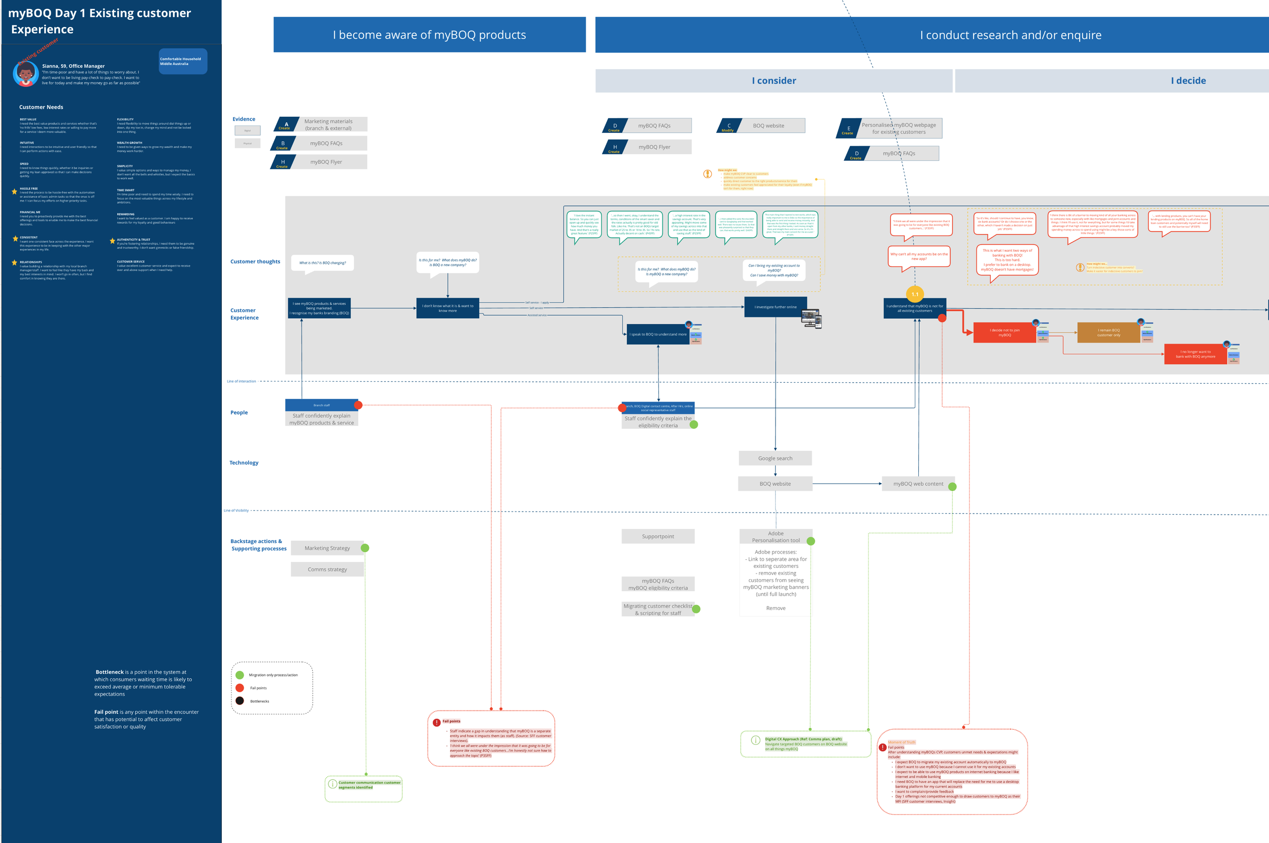 Launch Day Crisis Response: When negative press and customer complaints surfaced, our service blueprint became a critical asset, allowing BOQ to pinpoint key problem areas and rapidly implement solutions.