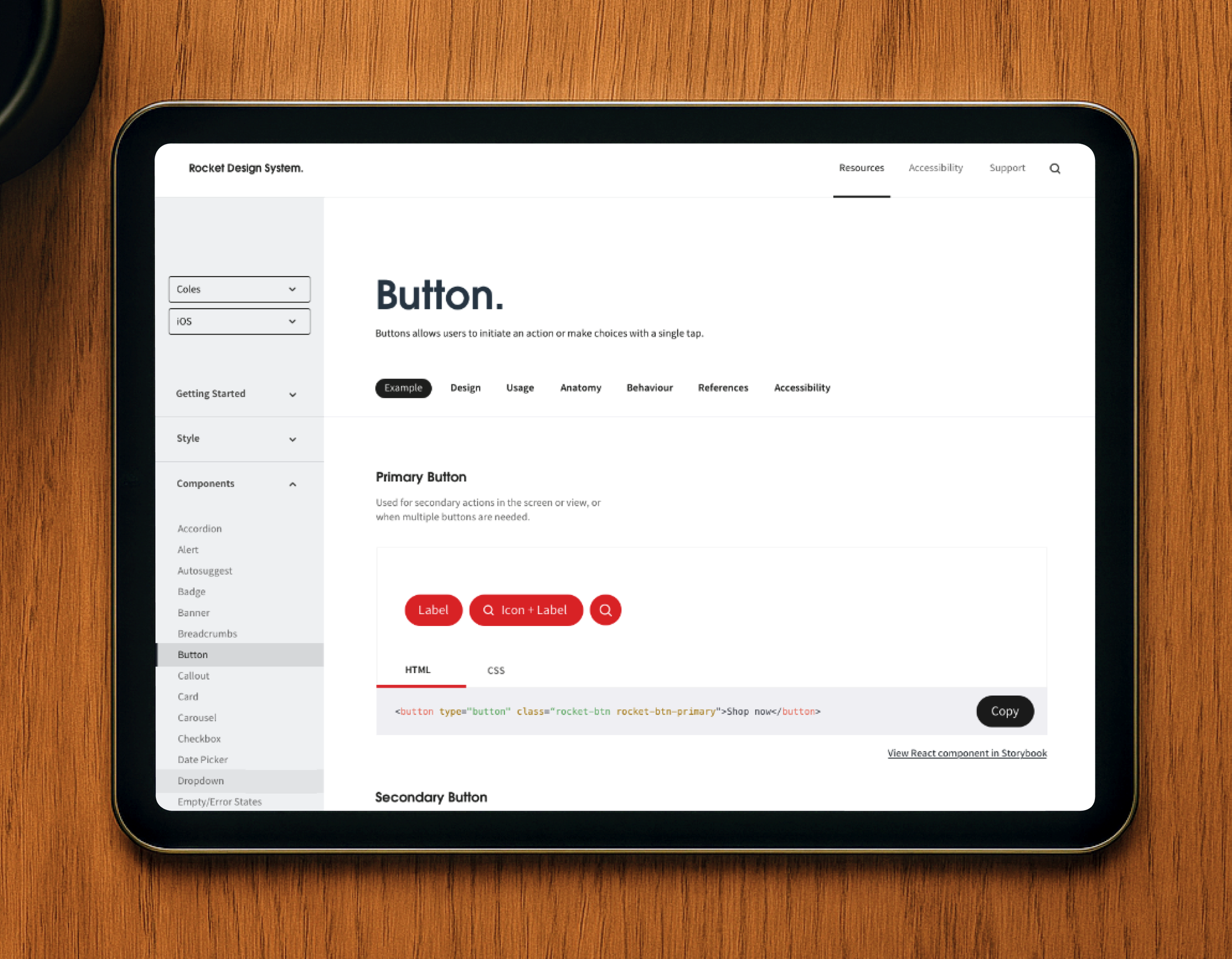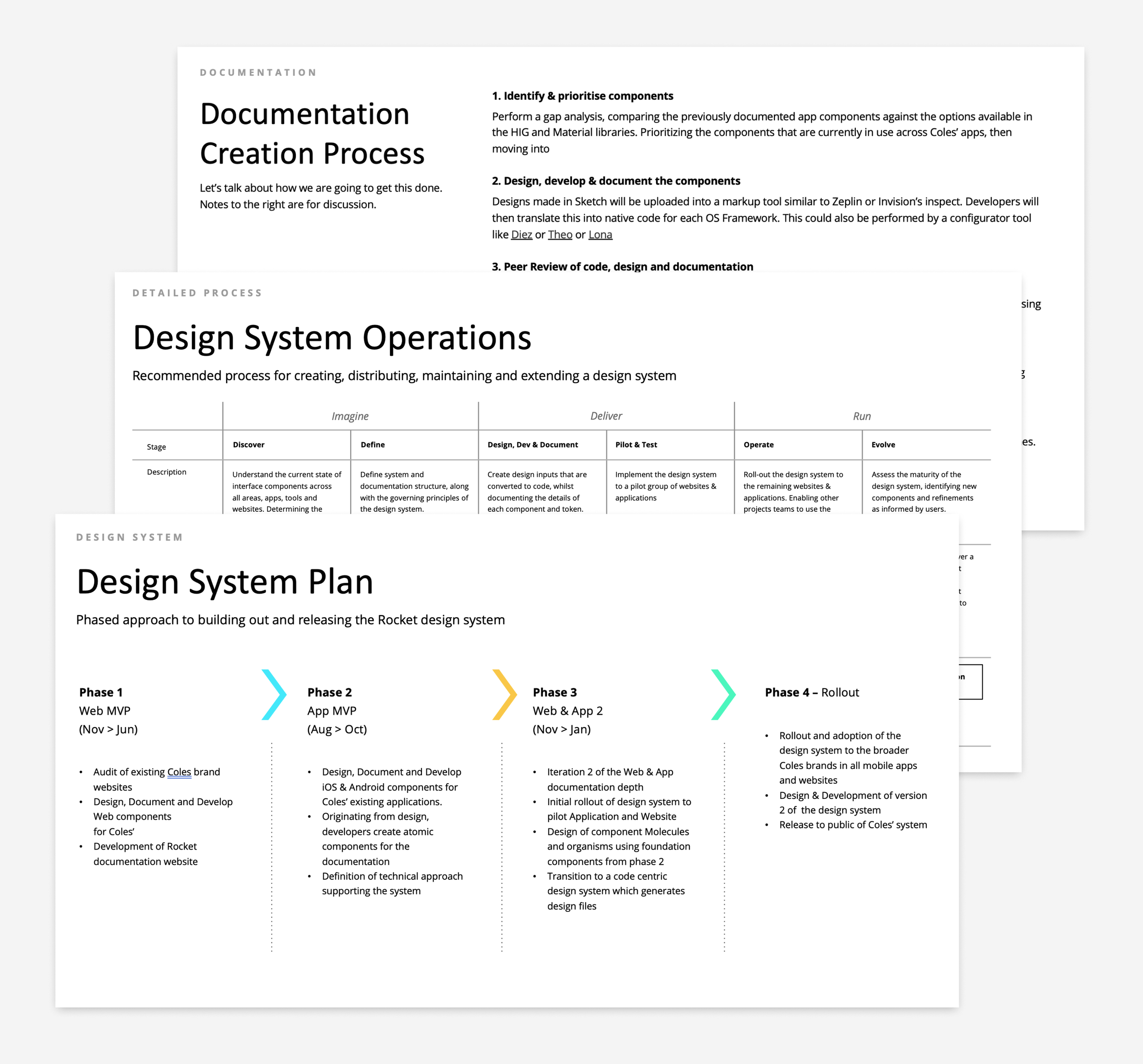 To support its ambitions for unified, efficient, and customer-centric digital experiences across its many brands, Coles needed a new UI foundation. The business decided to invest in creating a multi-brand, platform-agnostic design system—Rocket—to serve all digital channels (web, mobile, internal systems, and point-of-sale).